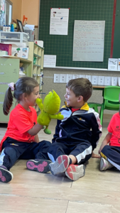 Además, contamos con una mascota que nos acompaña y con la cual los alumnos pueden interactuar. De esta forma se fomentan las conversaciones en inglés donde se trabaja tanto la parte auditiva como la oral.