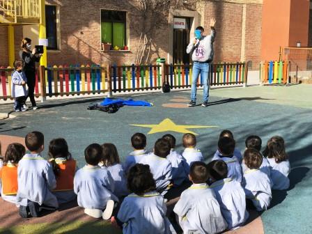 Hace unas semanas apareció Microplástico en el colegio. Traía peleas, mala alimentación y muchas ganas de contaminar el planeta… enseguida descubrimos que teníamos un gran reto: convencerle de lo contrario con nuestros amigos Fresita y Fresón, (en 3 años), PazWoman (en 4 años) y PenciMan (en 5 años).
