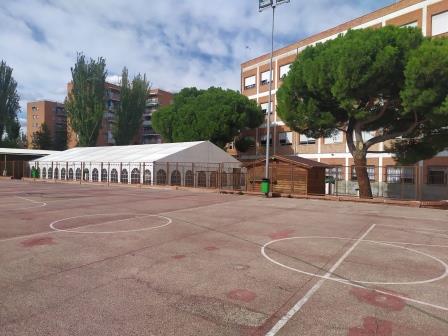 Desde el martes día 6 que comenzaron los preparativos del espacio y de seguridad para la ubicación de la carpa, hasta el día 9 que estaba ya montada, revisada y adaptada, éste ha sido un tema de conversación y curiosidad en toda la Comunidad Educativa.